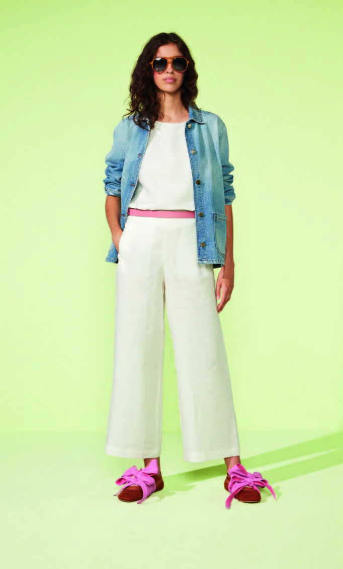 Ideale con pantaloni fluidi o abiti stampati, si abbina a sneakers pulite o stivaletti bassi, completata da una tote bag o da accessori minimal per un look urbano e disinvolto.