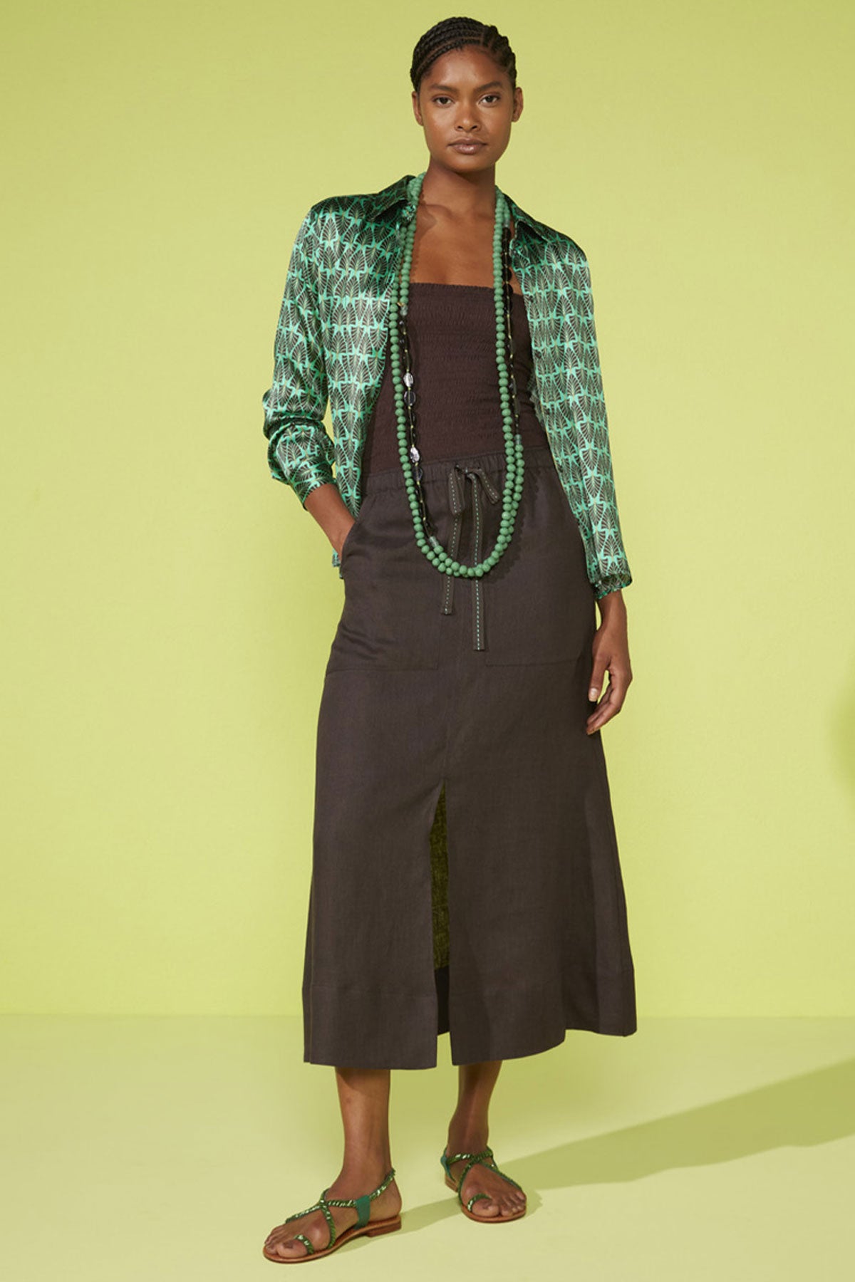 Facile da abbinare a top leggeri o camicie in lino, si presta sia a look quotidiani che a interpretazioni più sofisticate dal gusto naturale.