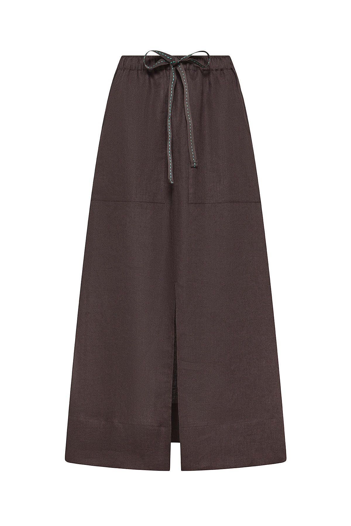 Gonna in lino con coulisse e spacco frontale