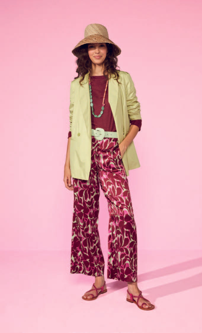 Pensato per esaltare la preziosità della seta e la grafica della stampa, si inserisce con naturalezza in look leggeri e sofisticati, lasciando che siano tessuto e motivo a definire il carattere del capo.