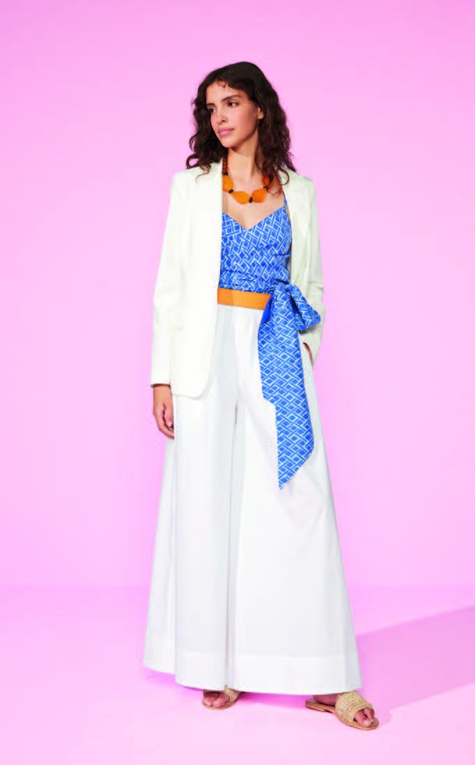 Pensato per mettere in risalto il dettaglio della fascia e la stampa, si presta a interpretazioni fresche ed equilibrate, mantenendo un’estetica essenziale.