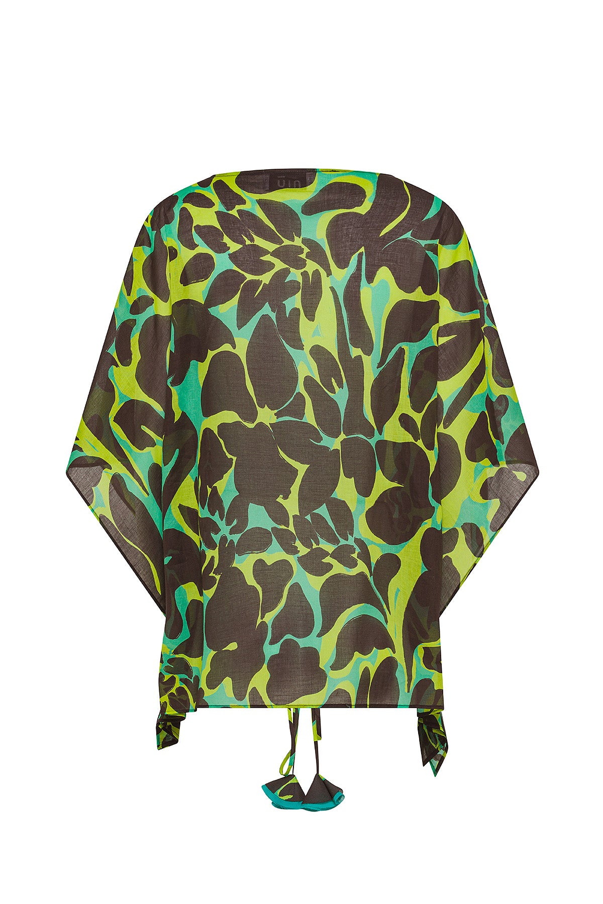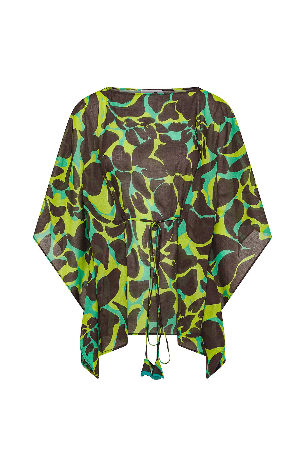 Leggero e scenografico, questo top è realizzato in voile con stampa di collezione ed è caratterizzato da una manica ampia a pipistrello che dona volume e movimento alla silhouette. La linea fluida accompagna il corpo con naturalezza, valorizzando la leggerezza del tessuto.