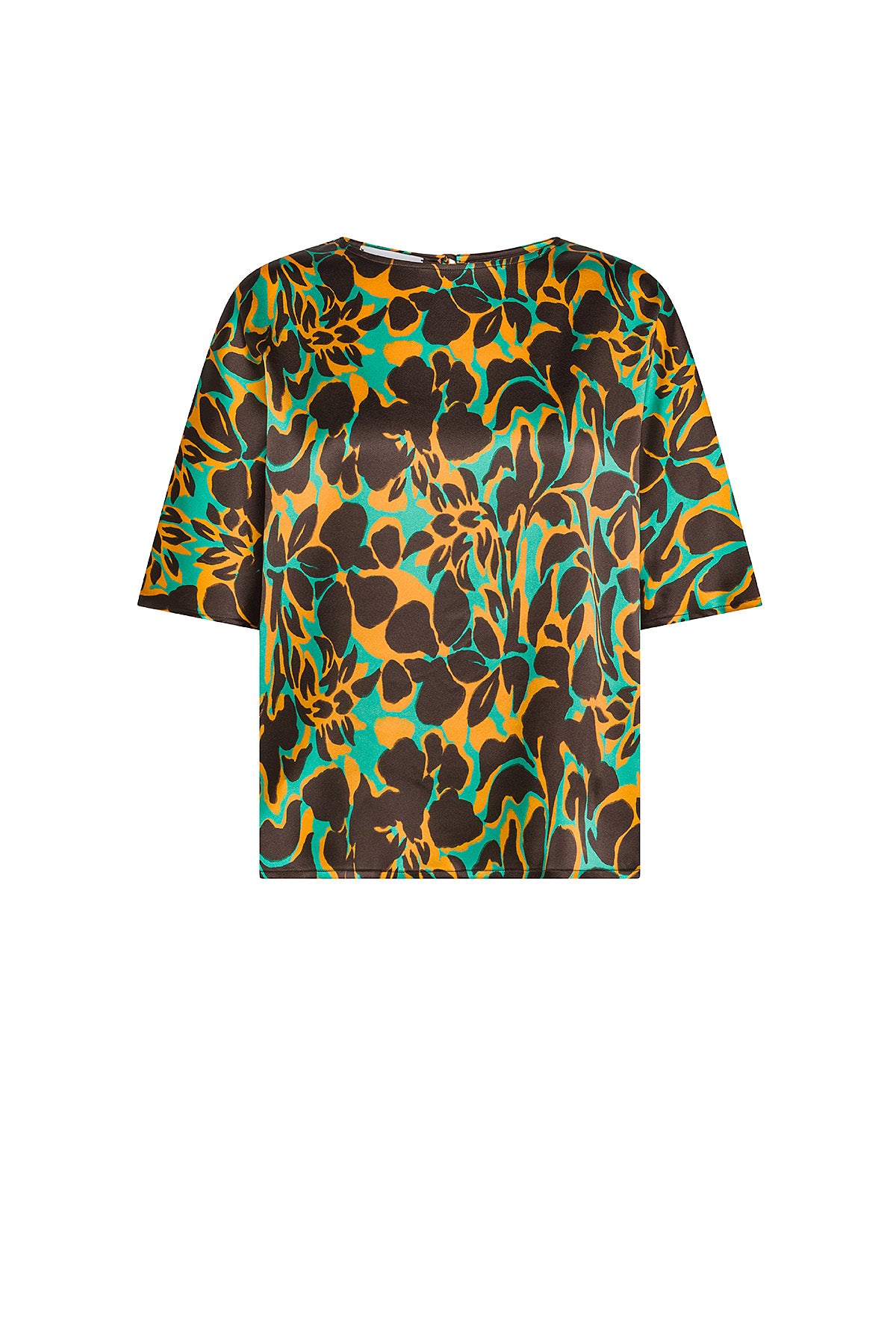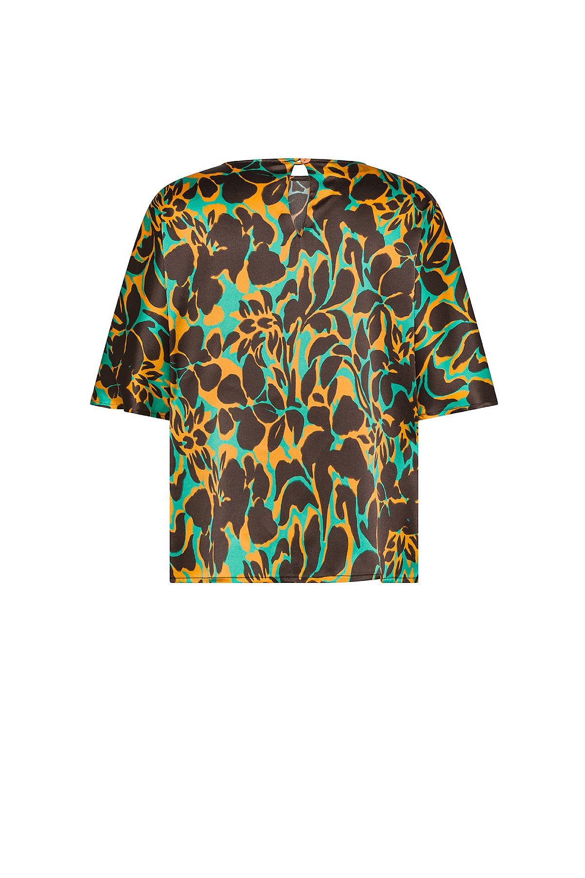 Ideal als Blickfang über minimalistischen Outfits, lässt sich die Bluse mühelos in schlichte Kombinationen integrieren und stellt die Qualität des Stoffes sowie des Drucks in den Vordergrund.