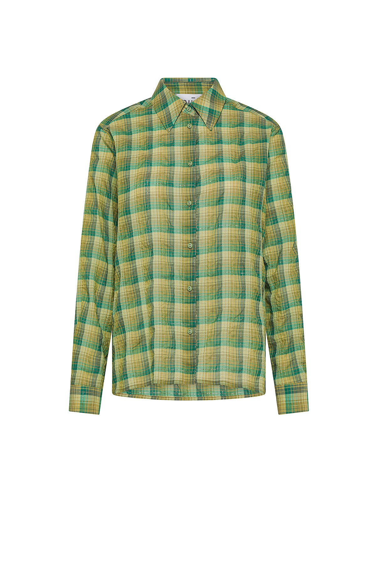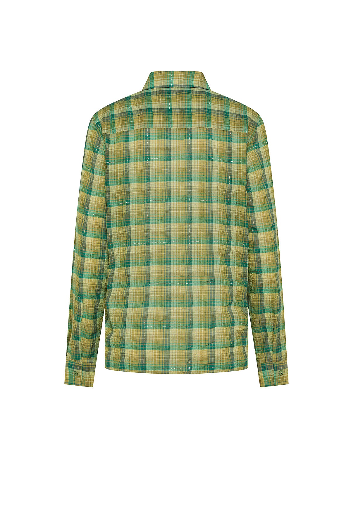 Leuchtend und zeitgemäß: Dieses Langarmhemd besteht aus Karogewebe mit Lurexfäden, die der Oberfläche einen dezenten Schimmer verleihen. Die zentrale Knopfleiste bewahrt das klare Design und betont die Textur des Stoffes.