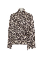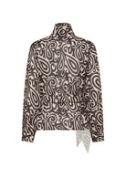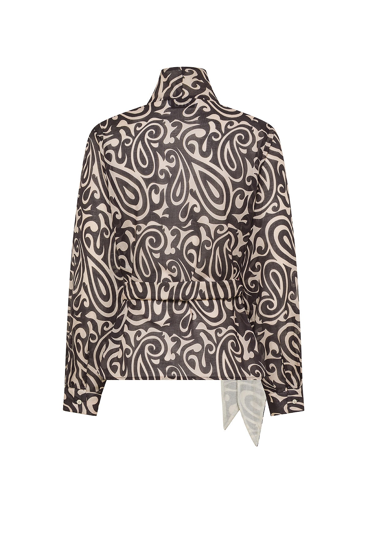 Raffiniert und leicht: Diese Langarmbluse aus bedrucktem Voile zeichnet sich durch eine seitliche Wickelung aus, die dem Design ein fließendes und elegantes Detail verleiht. Der hohe Kragen setzt einen edlen Akzent und balanciert die Leichtigkeit des Stoffes mit einer leicht strukturierten Silhouette.