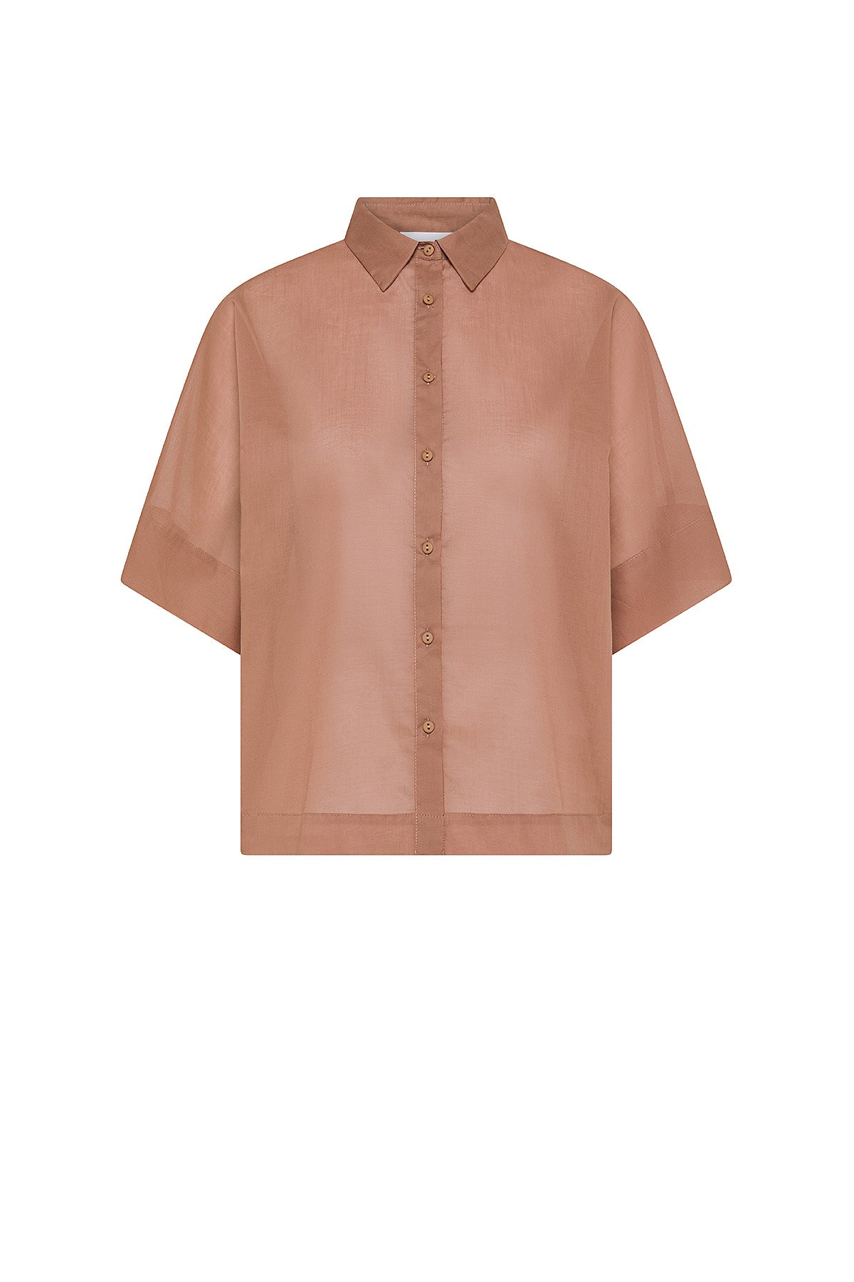 Leicht und lässig: Diese Kimono-Bluse aus Baumwoll-Voile zeichnet sich durch eine weiche, luftige Silhouette aus, ideal für die Sommersaison. Die dreiviertellangen Ärmel balancieren das Volumen des Kleidungsstücks, während die vordere Knopfleiste in Ton-in-Ton eine saubere, essentielle Ästhetik bewahrt.