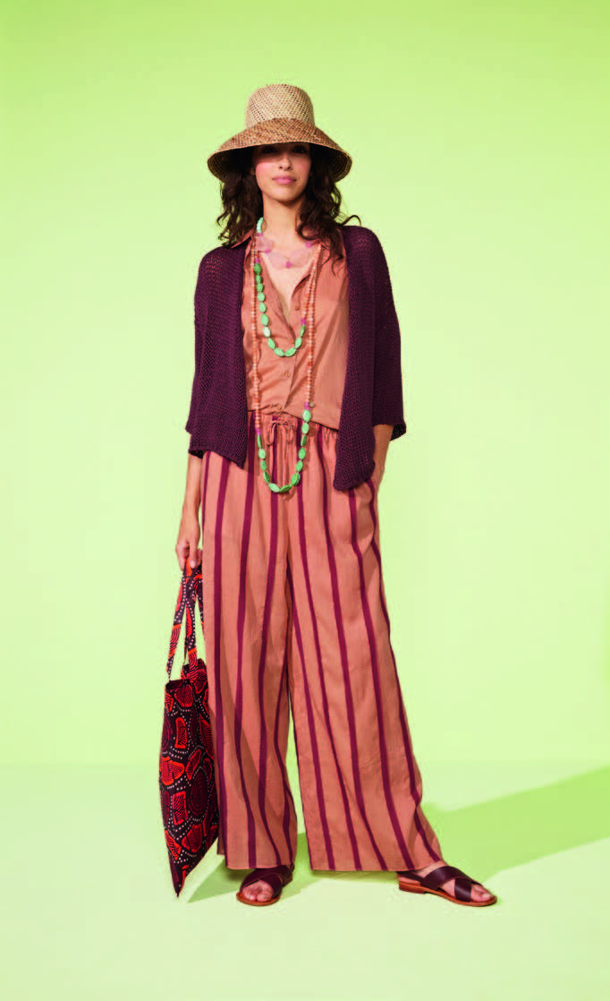 Ideal kombinierbar mit weiten Hosen oder Midirocken, dazu geflochtene Sandalen oder flache Slingbacks, ergänzt durch eine weiche Tasche oder minimalistische Accessoires für einen gepflegten, natürlichen Sommerlook.