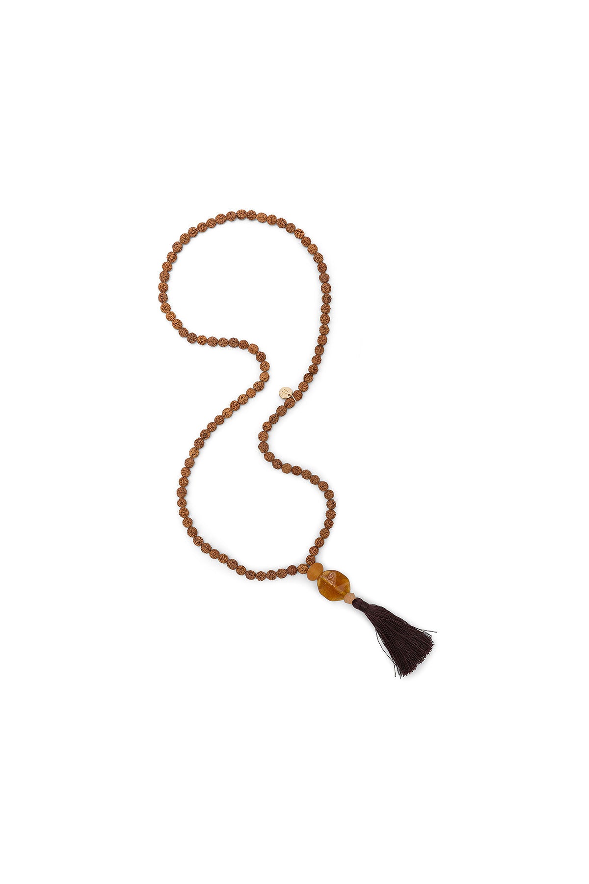 Lange Halskette aus Naturholz mit dekorativen Elementen