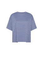 Entspannt und modern präsentiert sich dieses kurzärmelige Jersey-Shirt mit Muster, das durch seine Oversized-Passform und die Weichheit des Materials besticht, das den Körper auf natürliche Weise umspielt. Das Allover-Muster verleiht dem Modell Charakter und bewahrt gleichzeitig eine ausgewogene, leicht kombinierbare Ästhetik.