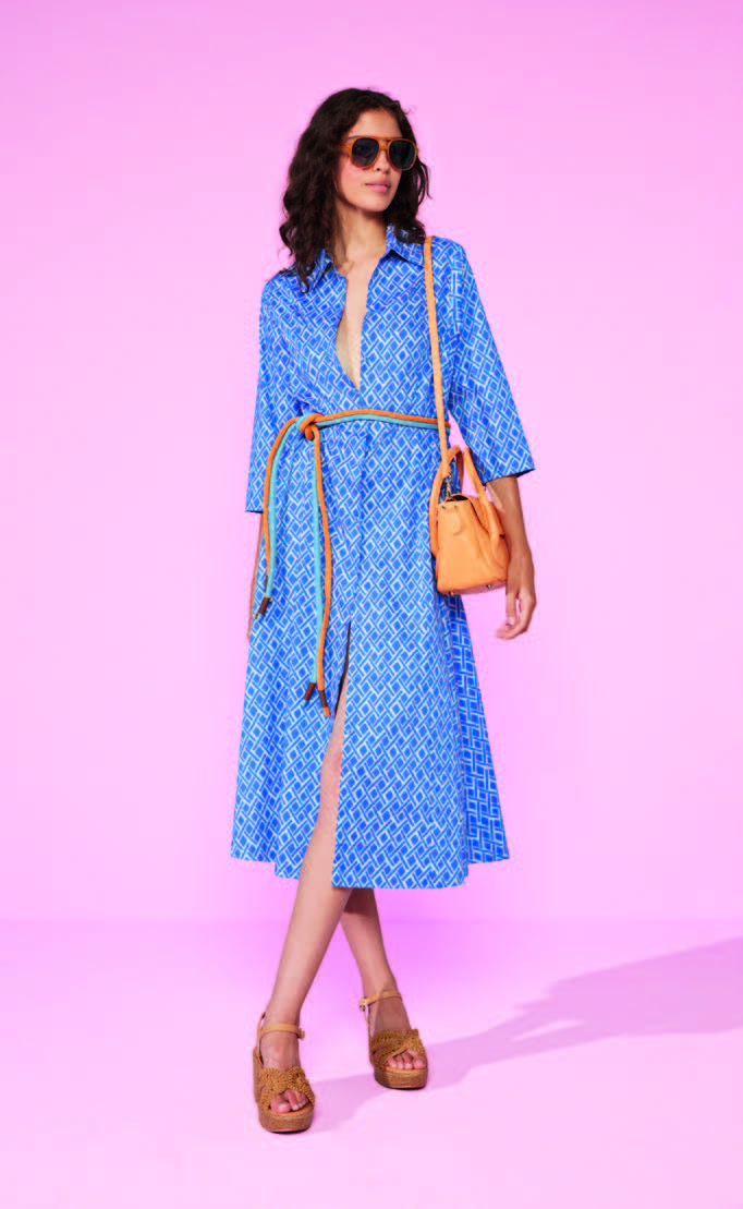 The lightweight fabric ensures comfort and fluidity, making this dress ideal to wear throughout the day. The shirt dress design—timeless yet contemporary—makes it extremely versatile, easily adapting to different settings with simplicity and style.