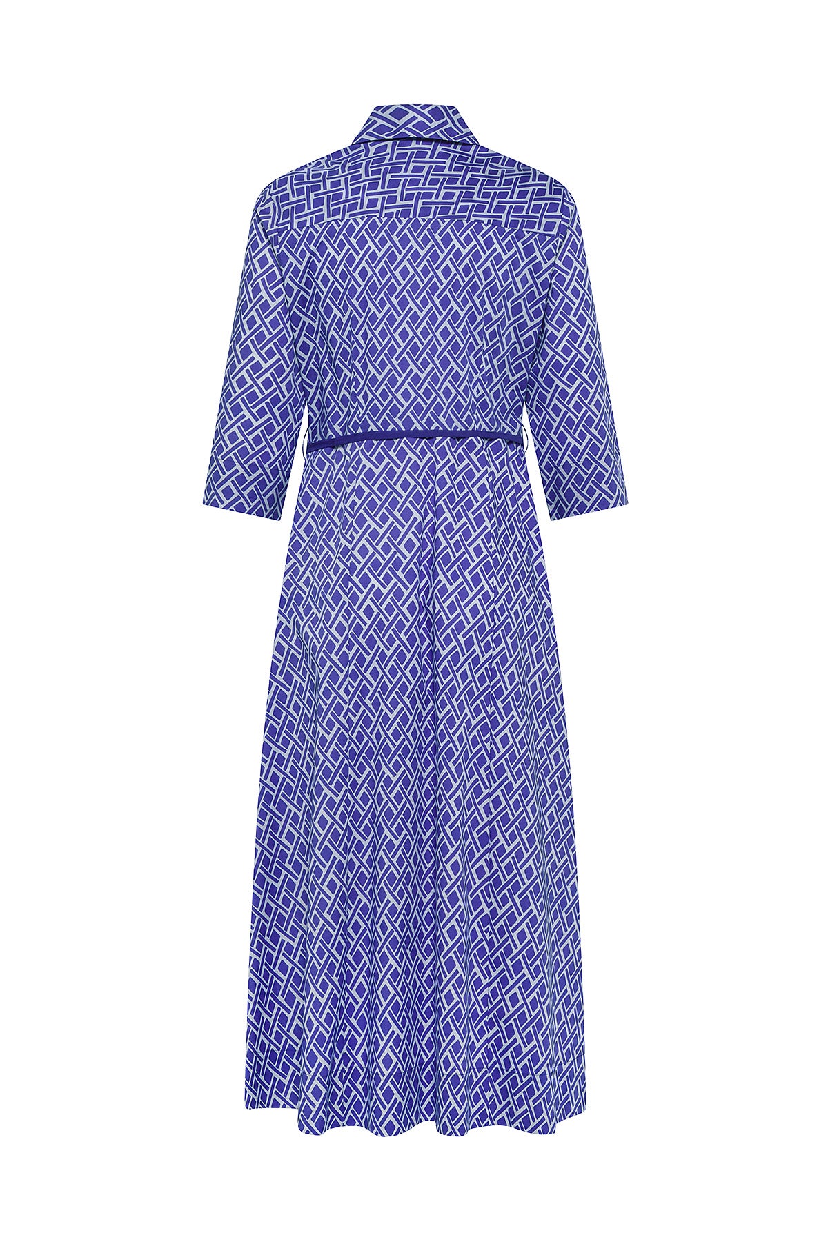 Elegant yet effortless, this long shirt dress with sleeves is crafted from lightweight fabric and enhanced by the exclusive collection print, designed to add character while maintaining a balanced aesthetic. The waist belt gently defines the silhouette, while the soft lines and essential cut naturally flatter the figure.