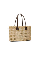 Medium rectangular bag crafted in braided sisal, featuring a natural, textured finish that defines its summery aesthetic. The interior is lined with fabric, offering added practicality and organization for everyday use.
