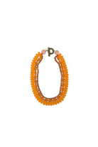 Compacto y decorativo, este collar corto está realizado con elementos de resina y madera de diferentes formas, creando un juego de texturas y volúmenes de gusto contemporáneo. La aplicación del logo en color dorado añade un acento luminoso y distintivo, realzando el diseño con un detalle elegante.