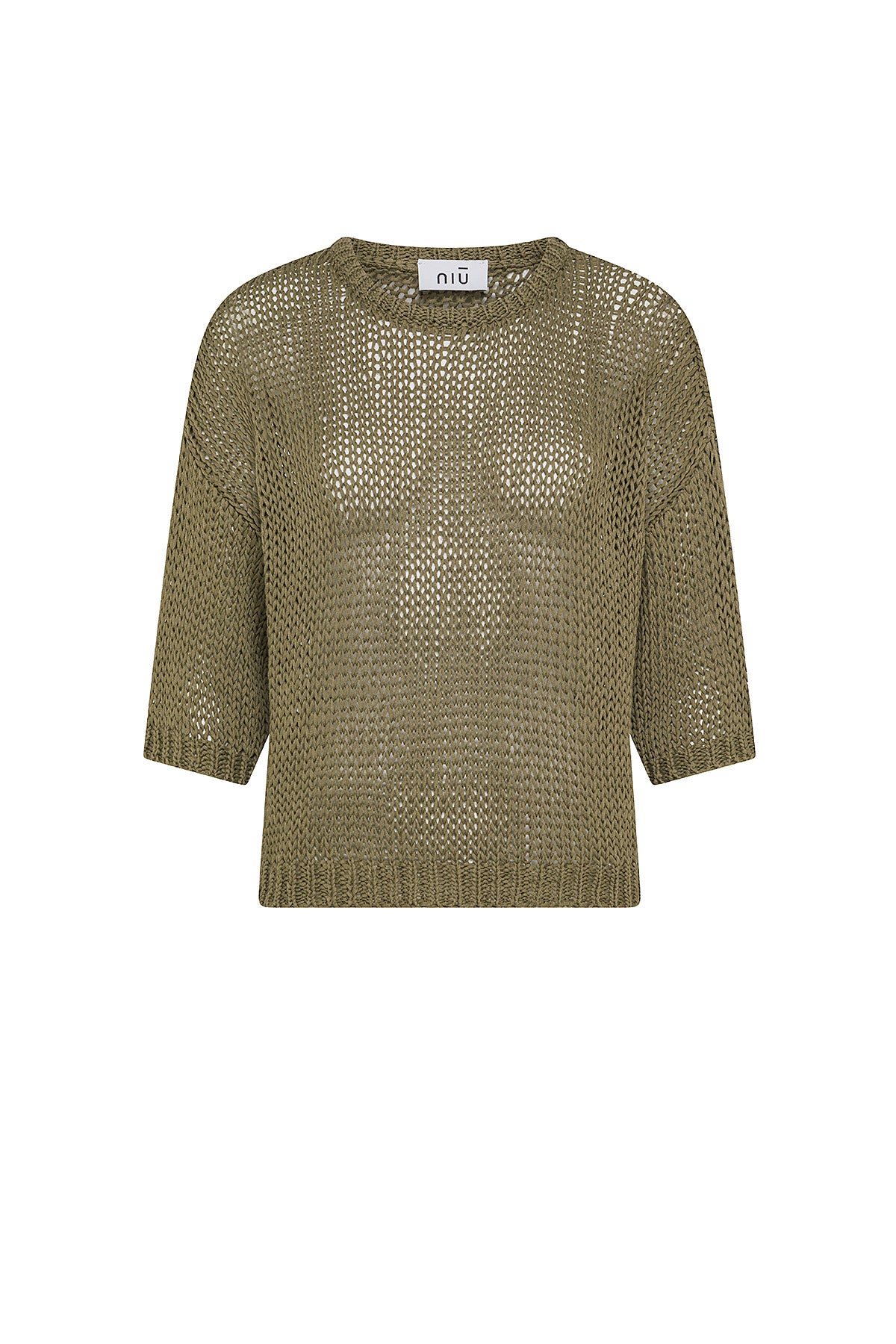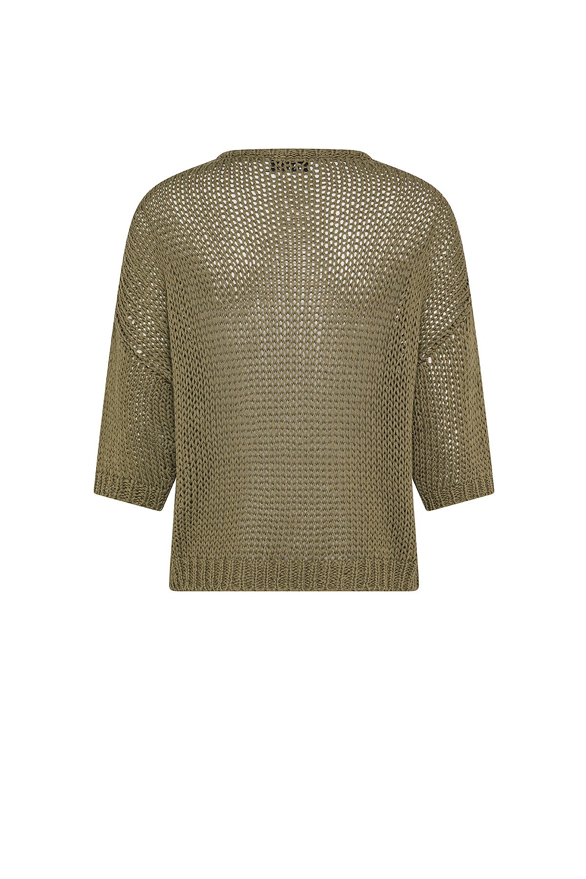 T-shirt in maglia speciale traforata monocolore con maniche a tre quarti