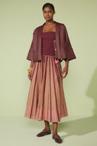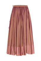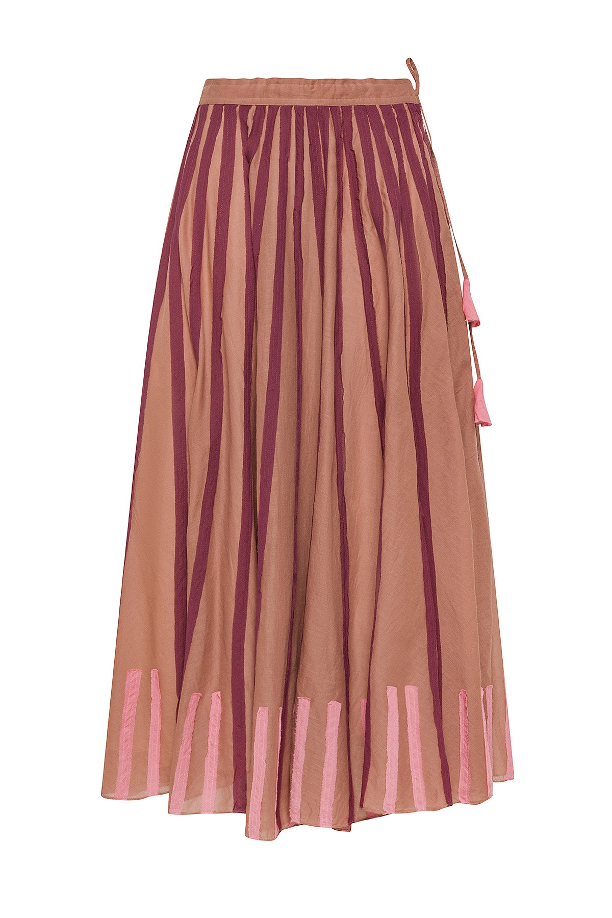 Jupe avec applications du projet Sampan, caractérisée par un travail artisanal spécifique avec applications insérées à la main, qui rendent chaque pièce unique et riche en personnalité. Le design exprime une esthétique recherchée, en équilibre harmonieux entre savoir-faire artisanal et féminité.
