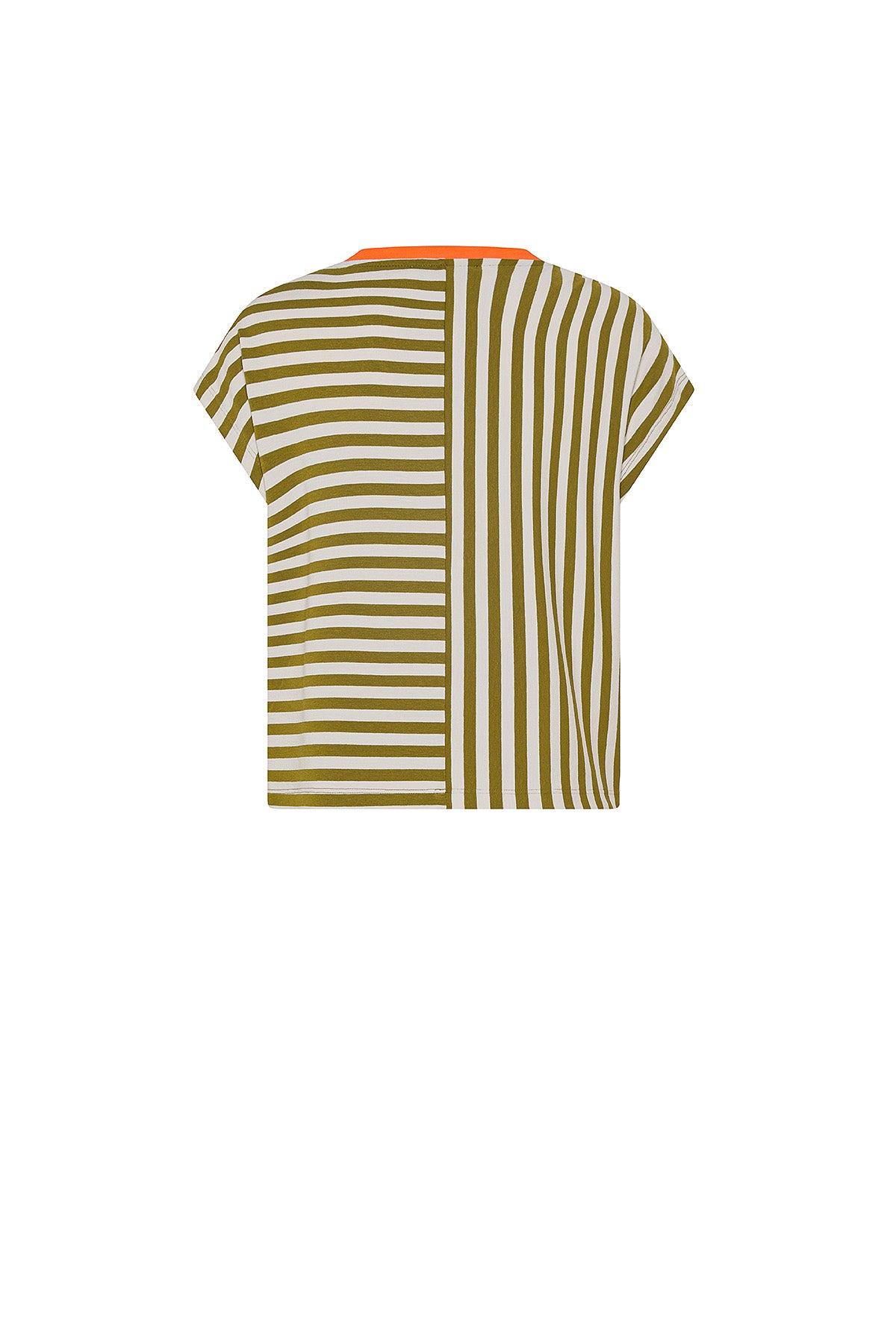 Au design graphique et recherché, cette maglia trapèze à manches courtes est réalisée en tissu à rayures qui joue avec l’orientation du motif. Sur le devant, les rayures suivent une ligne ordonnée, tandis que sur le dos elles tournent jusqu’à mi-dos, créant un effet visuel dynamique et contemporain.