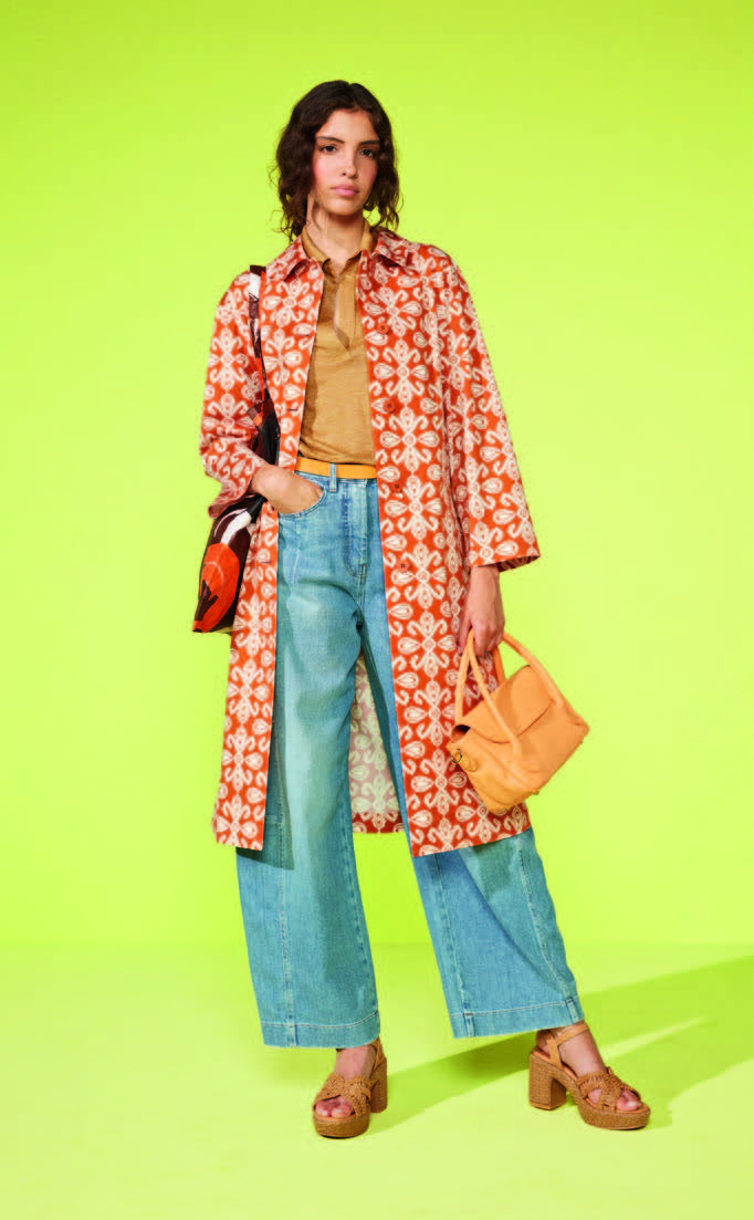 Parfaite avec un pantalon de tailleur ou une jupe fluide, elle se combine avec des mocassins légers ou des sandales en cuir lisse, complétée par un sac structuré ou des accessoires discrets