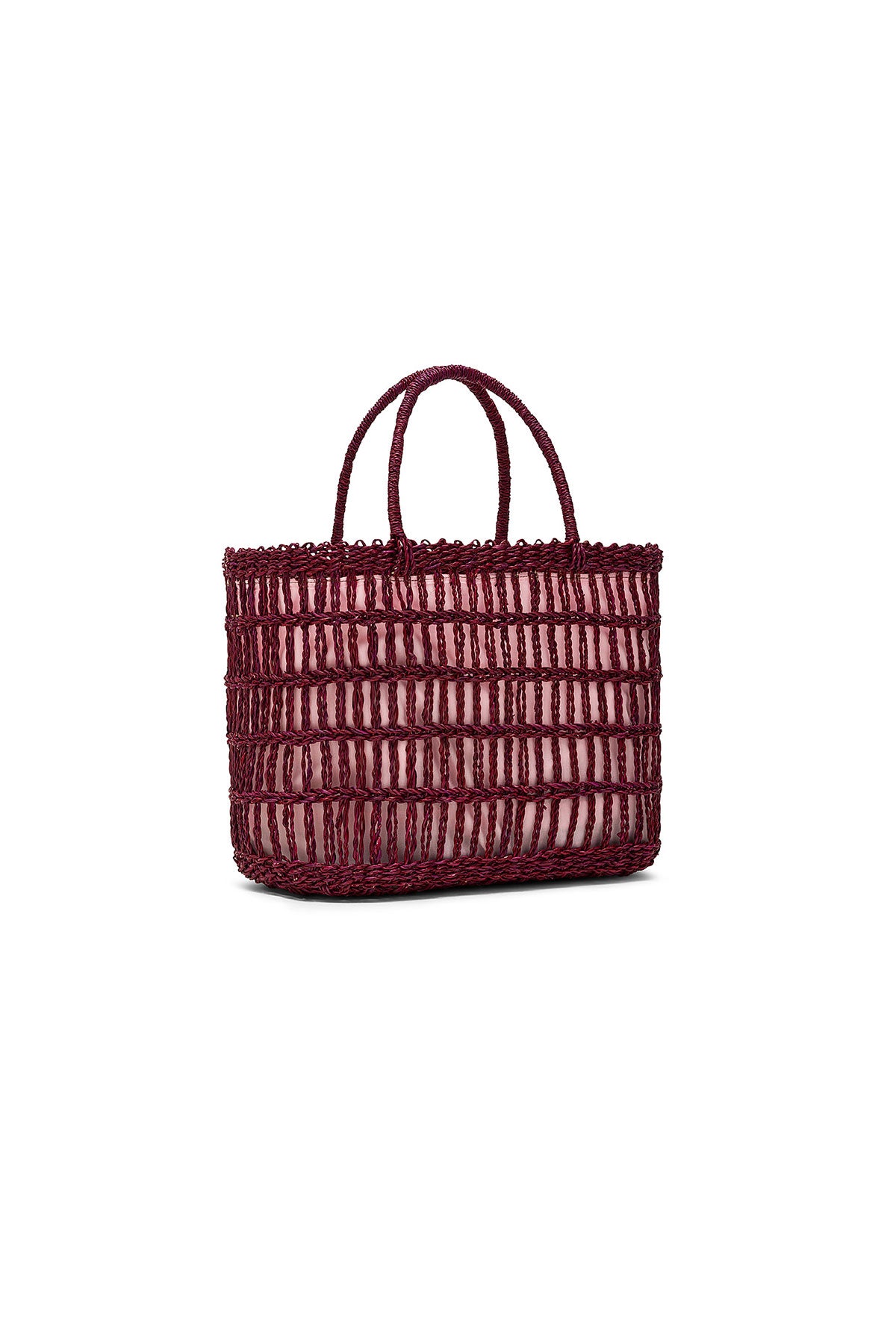 Borsa rettangolare di medie dimensioni in sisal intrecciato con rivestimento in tessuto all'interno